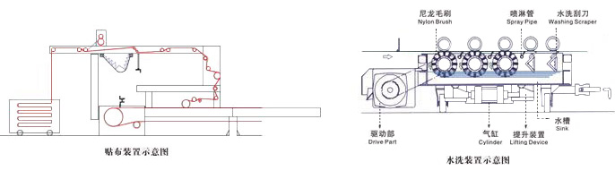 導(dǎo)帶清洗直接關(guān)系到印花質(zhì)量,本機(jī)水洗裝置由3根尼龍毛刷,3根噴淋管及2根刮刀等組成,整個(gè)裝置為氣動(dòng)結(jié)構(gòu),使導(dǎo)帶能達(dá)到最好的清洗效果。